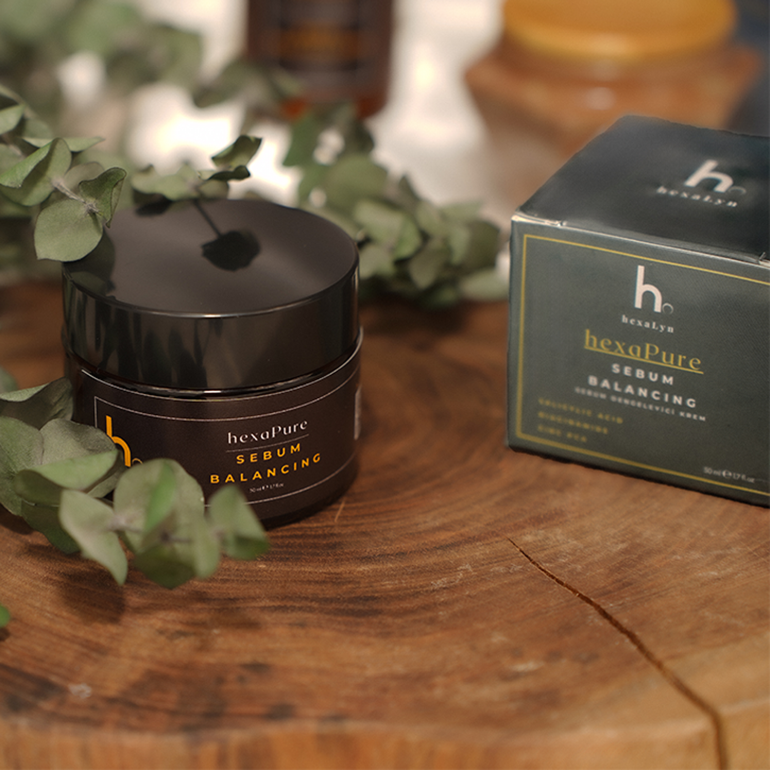hexaLyn'in Sebum Kontrolü Sağlayan Yağ Dengeleyici Yüz Kremi, cildinizdeki fazla yağı kontrol altına alırken sebum dengesini korur ve gözenekleri temizler.
